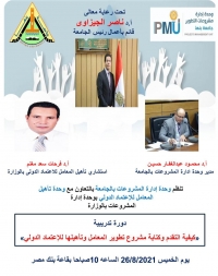 تحت رعاية معالي أ.د/ ناصر الجيزاوي قائم بأعمال رئيس الجامعة تنظم وحدة إدارة المشروعات بالجامعة بالتعاون مع وحدة تأهيل المعامل للاعتماد الدولي بوحدة إدارة المشروعات بالوزارة دورة تدريبية عن "كيفية…